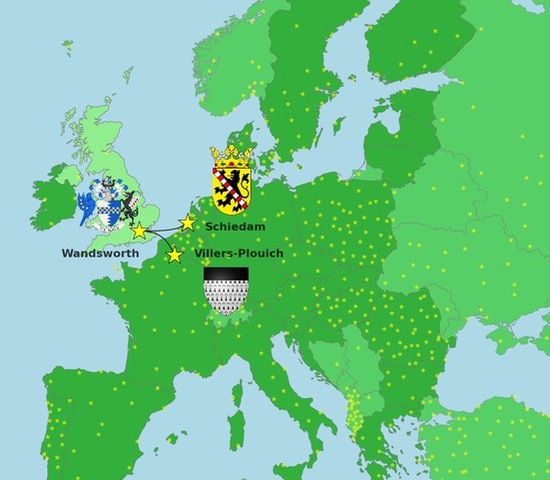 Wandsworth has paired up with two European partners in the past: Villers-Plouich in Picardy, northern France and Schiedam in the Netherlands – both are actually quite close geographically, and represent links forged in the First and Second World Wars, respectively.